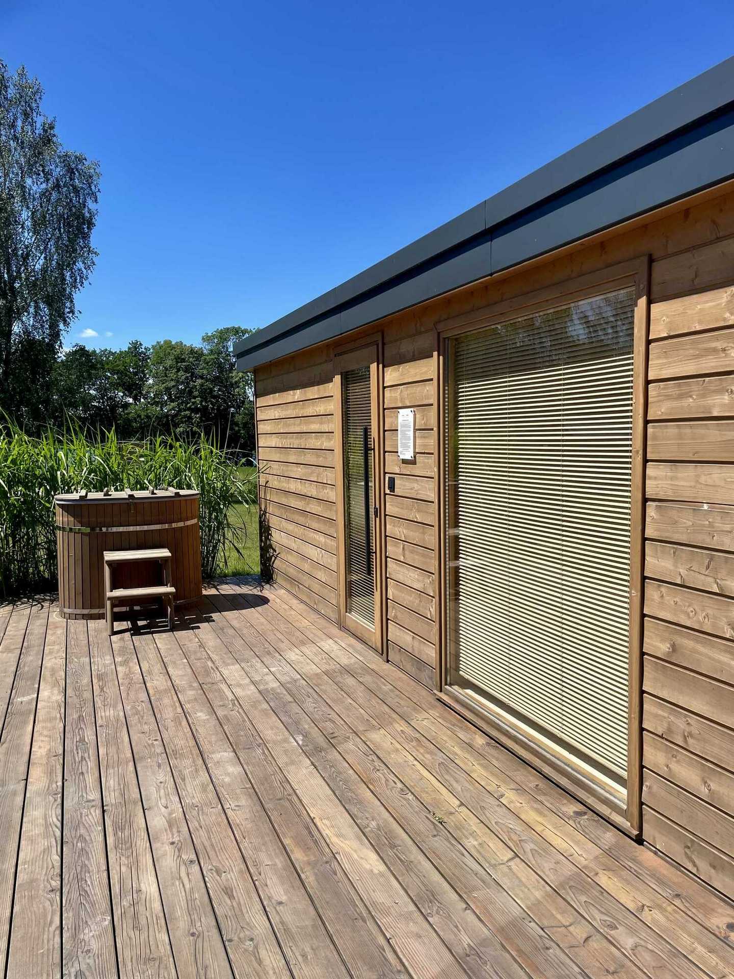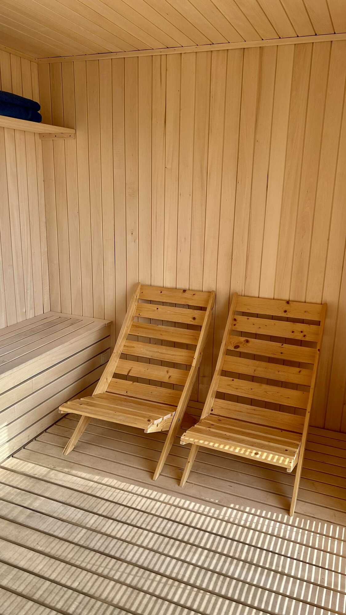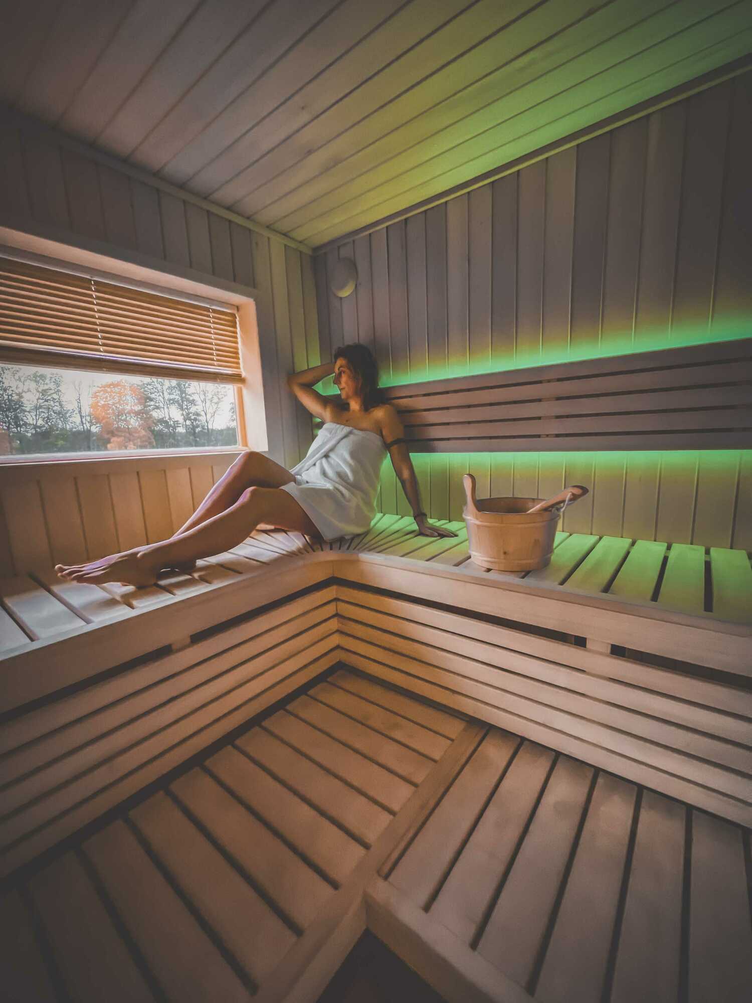 Marzysz o odprężającym seansie w gorącej saunie z widokiem na jezioro? Tylko w Osadzie Chmiel! Nasi goście mogą skorzystać z fińskiej sauny suchej, która została stworzona z myślą o pełnym relaksie i regeneracji organizmu. Regularne sesje w saunie pomagają oczyścić ciało z toksyn, wspierają pracę serca, poprawiają krążenie, a także są sekretem zdrowej cery, silnej odporności i doskonałej kondycji fizycznej. Sauna to również idealny sposób na redukcję stresu i zmęczenia, dając chwilę wytchnienia dla ciała i umysłu.