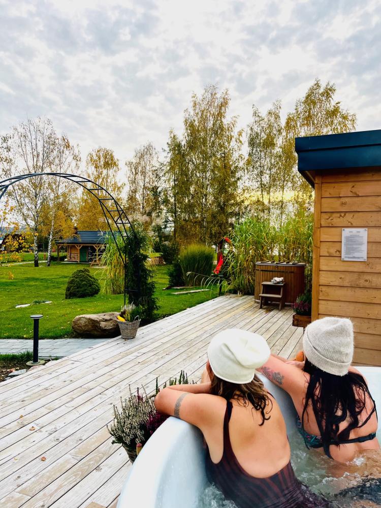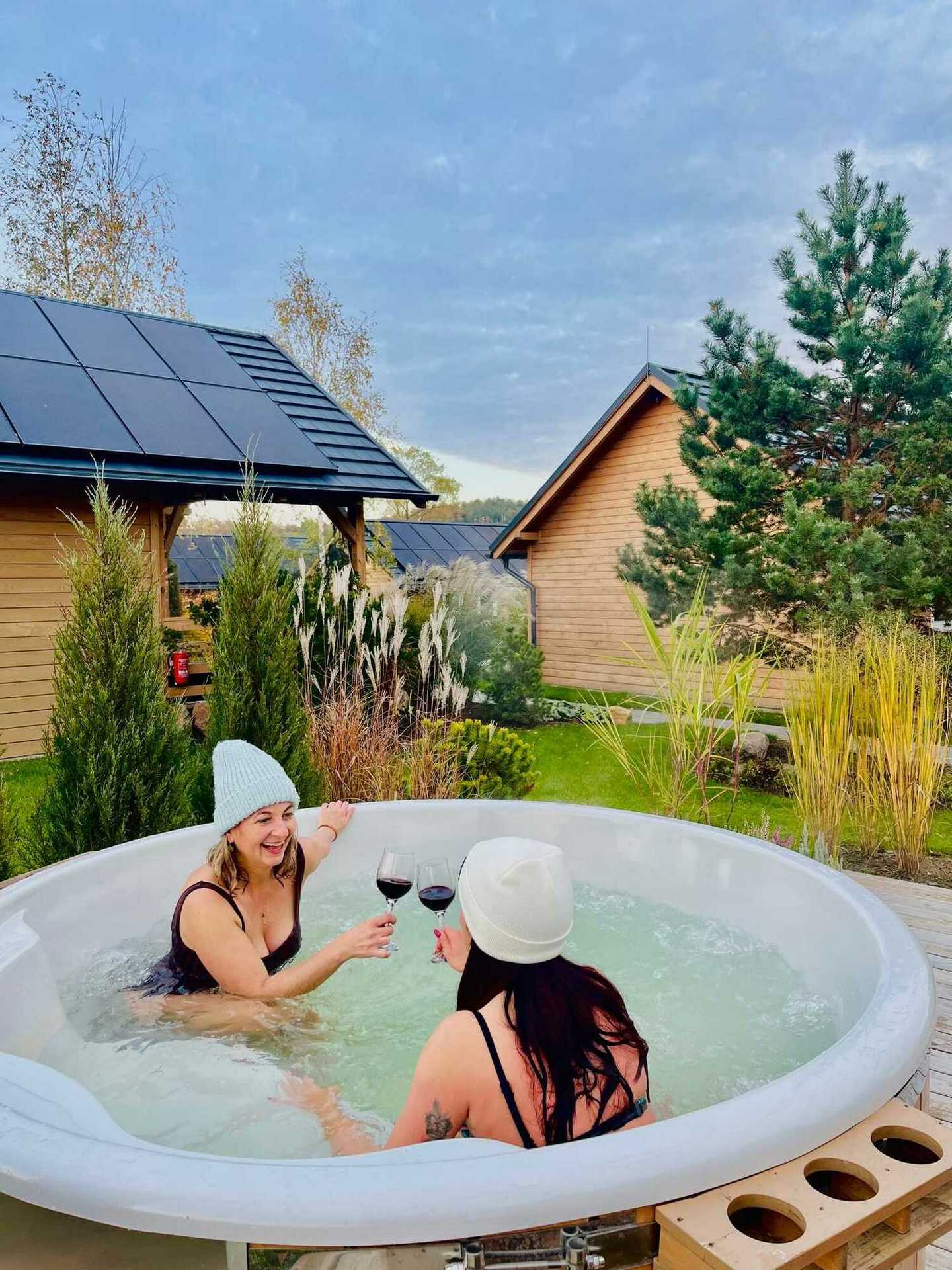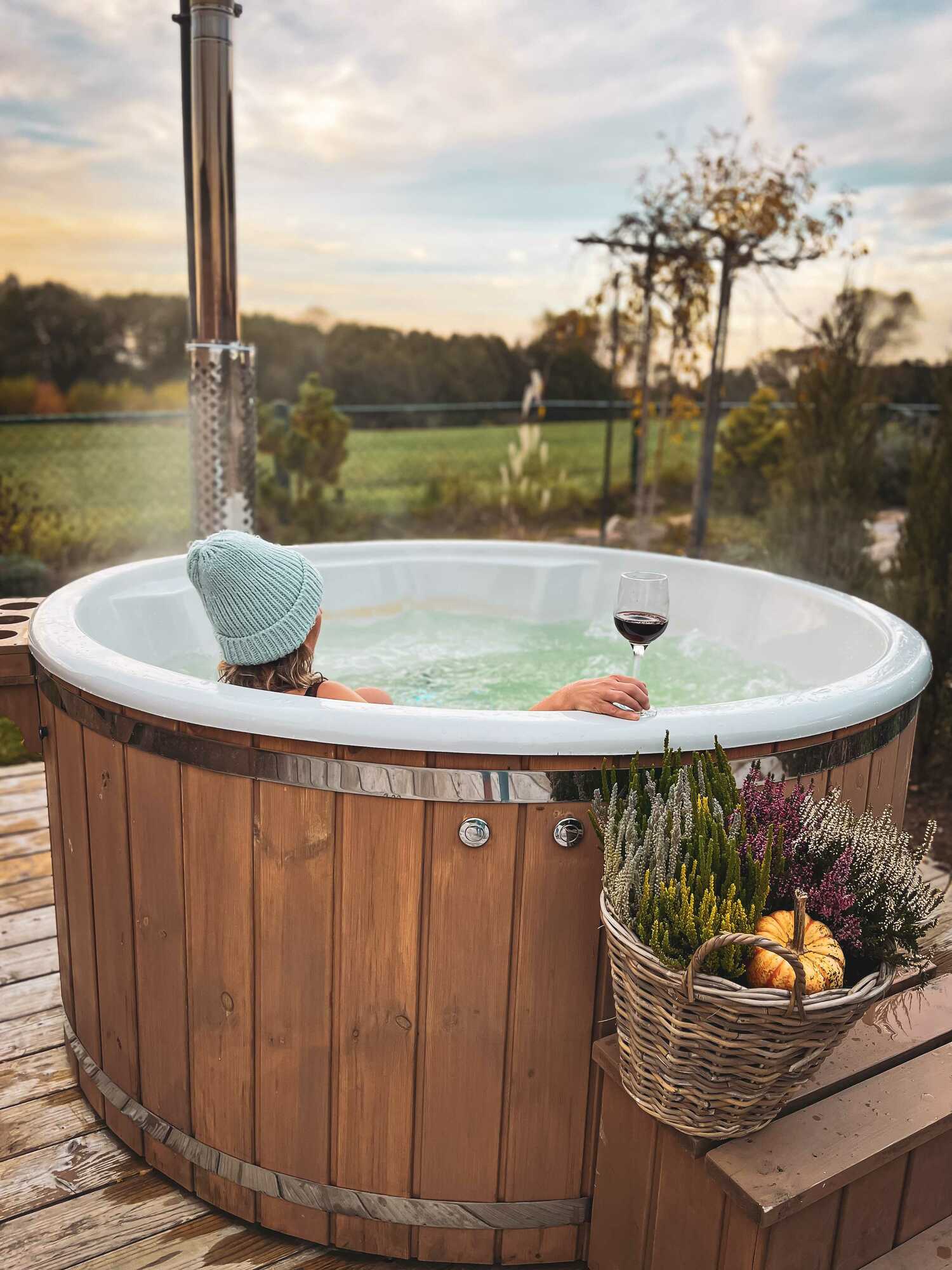 Całoroczna balia z jacuzzi, wyposażona w piec opalany drewnem, to idealne rozwiązanie na każdą porę roku. Latem doskonale chłodzi i orzeźwia, natomiast jesienią i zimą zapewnia przyjemne ciepło i głęboki relaks. Regularne korzystanie z balii wspiera odporność, odpręża, a także pomaga w walce z nadwagą i łagodzi dolegliwości stawowe oraz reumatyczne. Dzięki swojej pojemności, balia pomieści jednocześnie do 6 osób, oferując komfortowy wypoczynek.